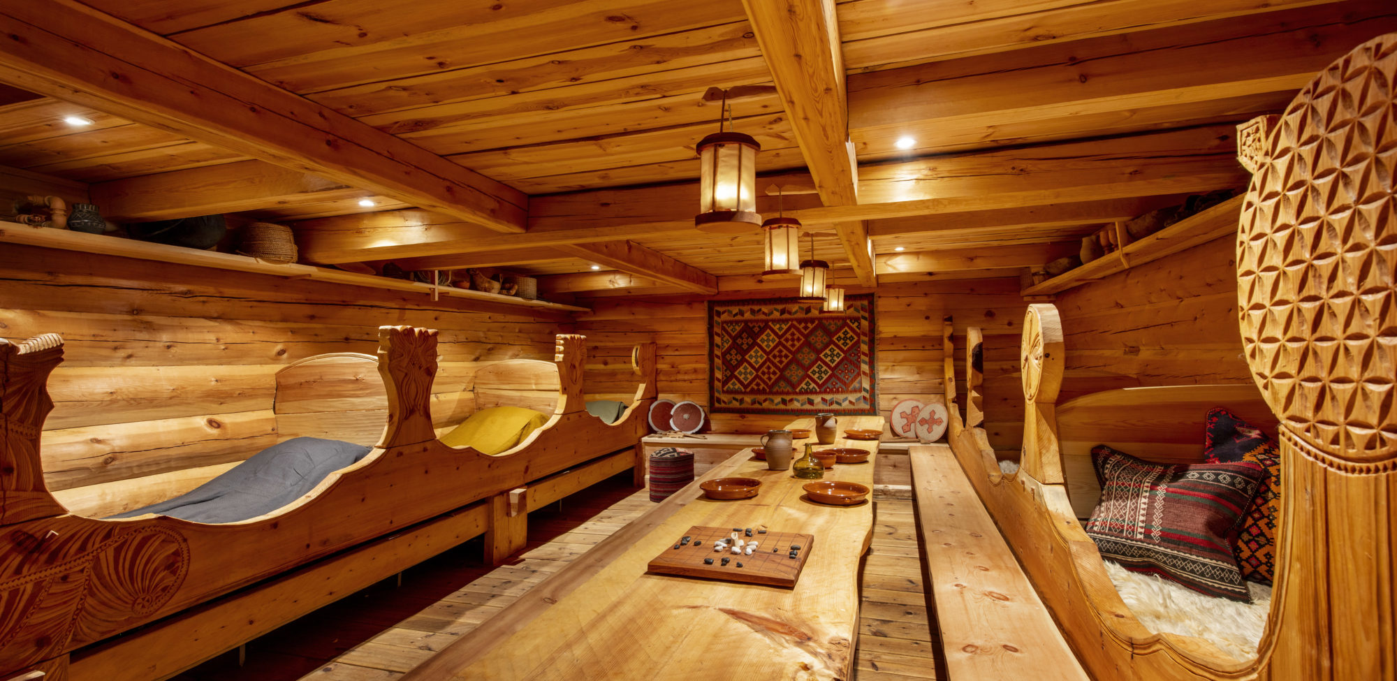 Sengene er en rekonstruksjon fra middelalderen og er litt kortere enn dagens standard. 6 enkeltsenger i samme rom, som en sovesal. Det finnes toalett- og dusjfasiliteter, og det er et lite tekjøkken for tørrmat. Frokost kan kjøpes i tillegg, serveres på hotellet. Sengeklær kan leies i tillegg. Skjema for booking finner du nederst på denne siden.