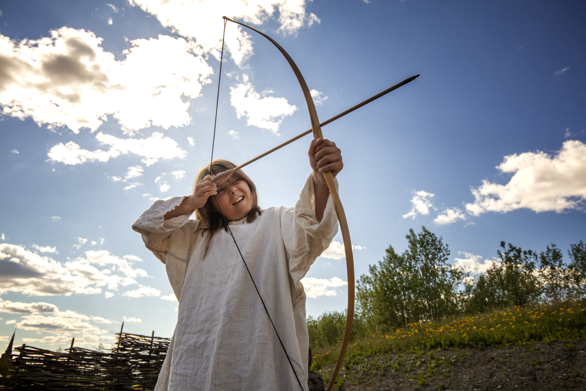Lær å skyte med pil og bue, og leik i vår store pilegrimslabyrint, samt andre vikinginspirerte aktiviteter. Du får låne vikingklær, hjelm, sverd og skjold til fotografering.
